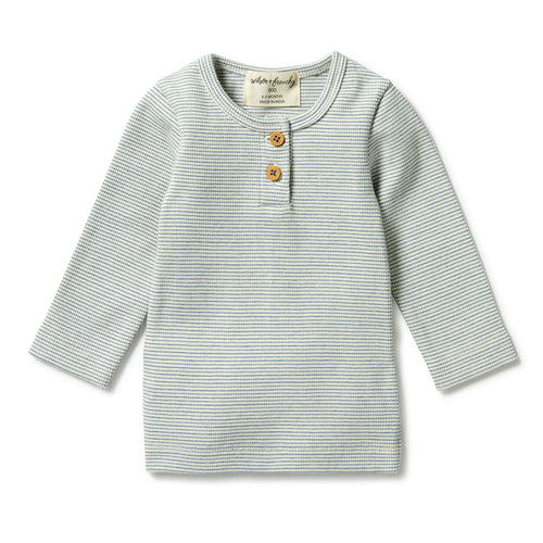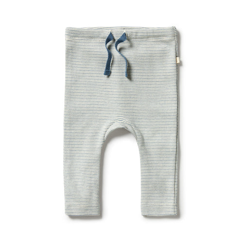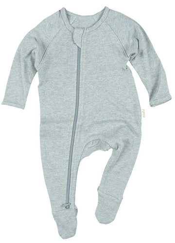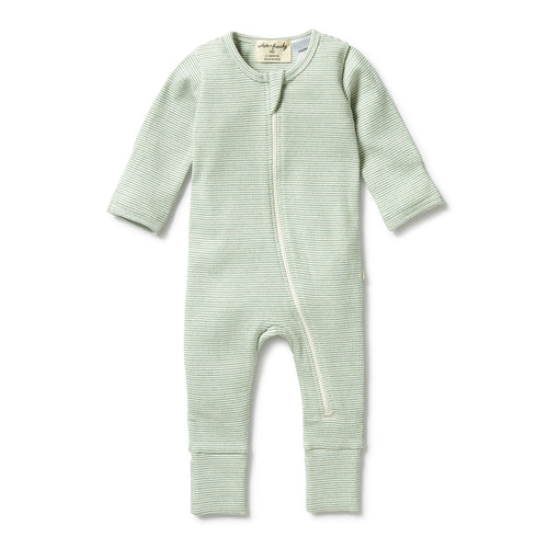 Organic Stripe Rib Zipsuit with Feet Deep Sea