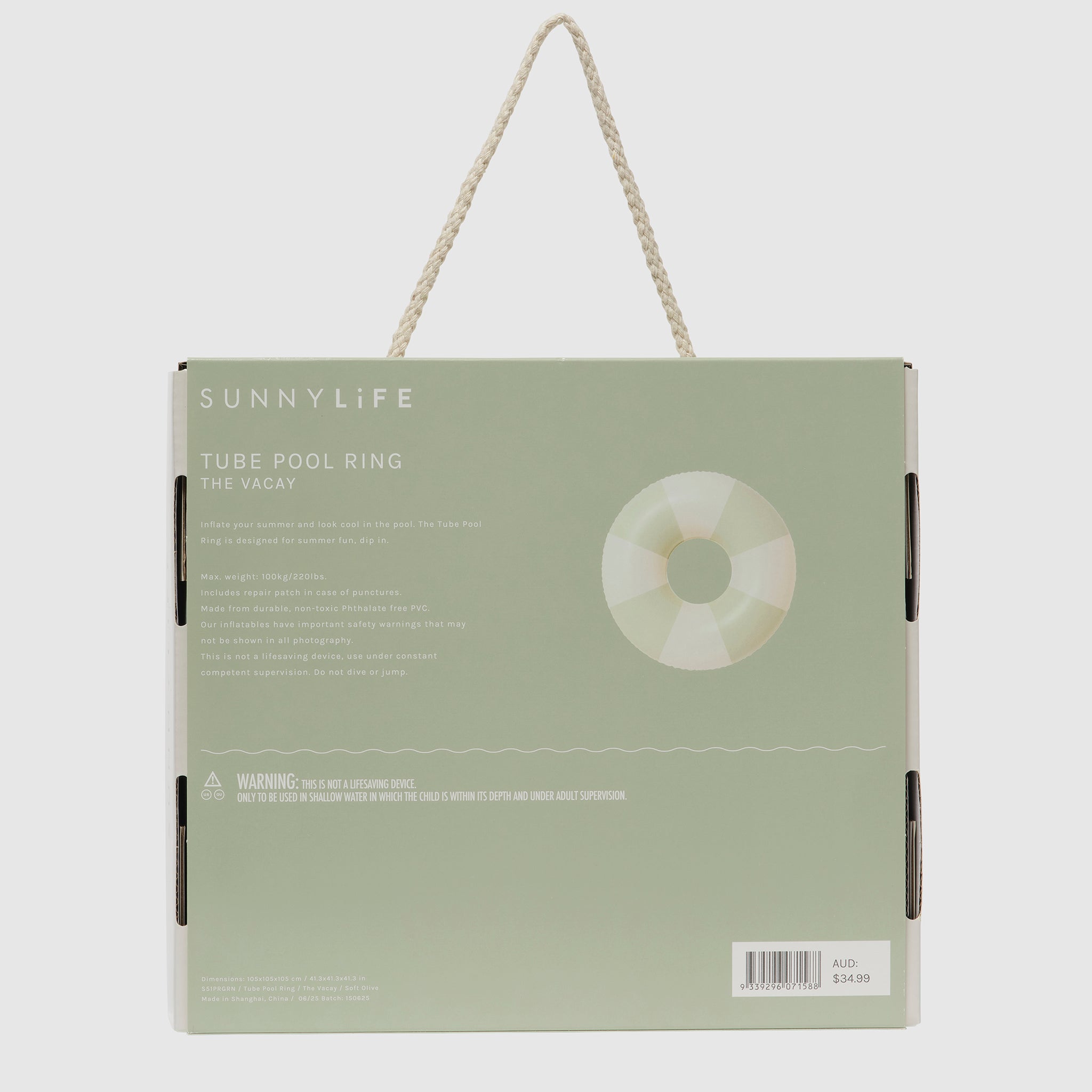 Retreat to paradise and soak up the summer sun. The Vacay Soft Olive Tube Pool Ring is stylish, leisurely, and easy going, perfect for floating in the pool and long balmy days spent by the seaside. Designed in a classic pool ring shape and with its generous size, floating has never been so effortlessly comfortable. Take delight in the simple pleasures of the tropics with its warm olive and cream maxi stripe print that will have you drifting into a daydream.