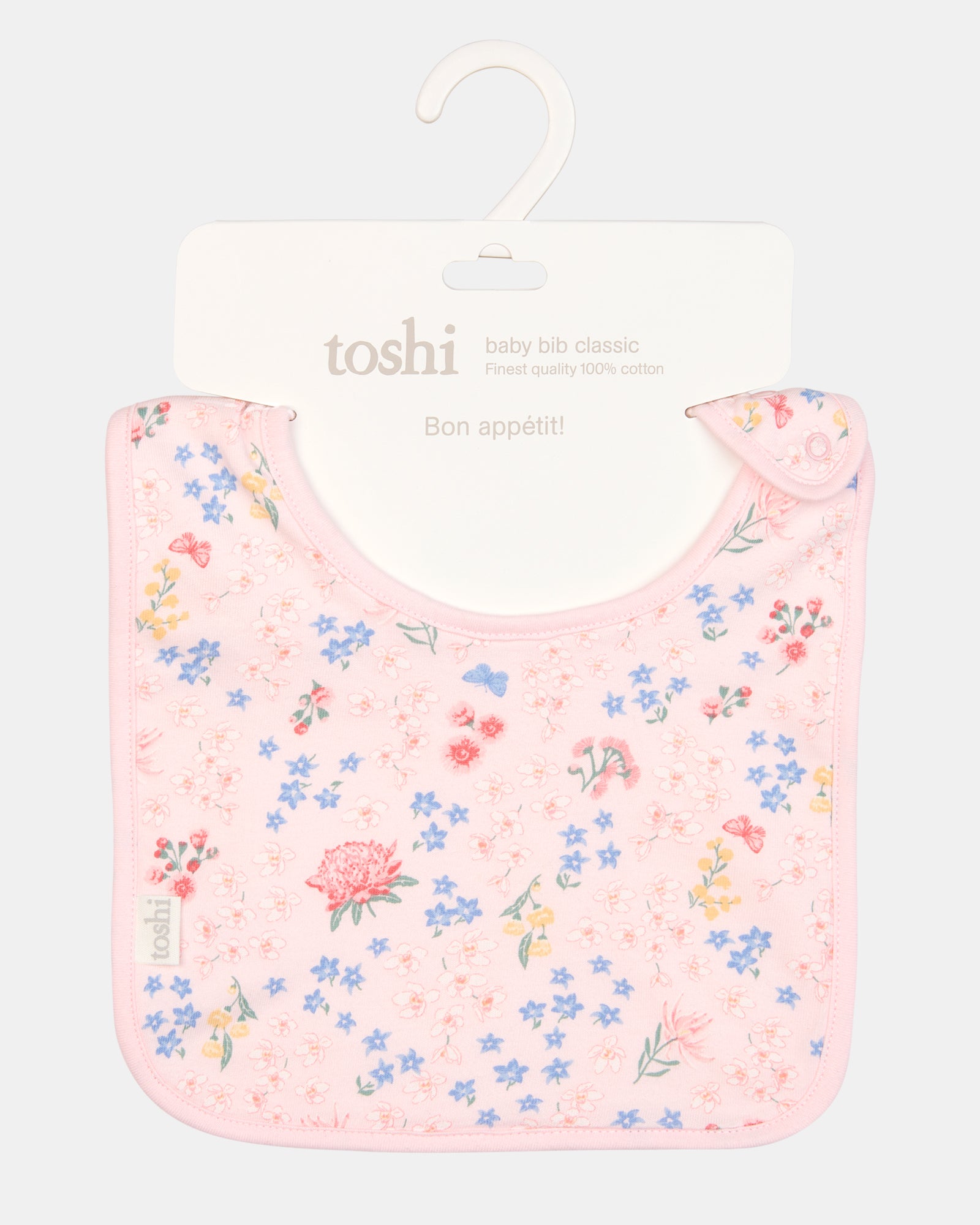 The Toshi Baby Bib Down Under is crafted from the finest quality 100% cotton. An original and exclusive Toshi print design is featured. The bibs have absorbent cotton towelling padding on the reverse for moisture protection. Conveniently located press studs create adjustable sizing. Toshi baby bibs are functional, versatile and gentle on delicate skin. Bon appetit!