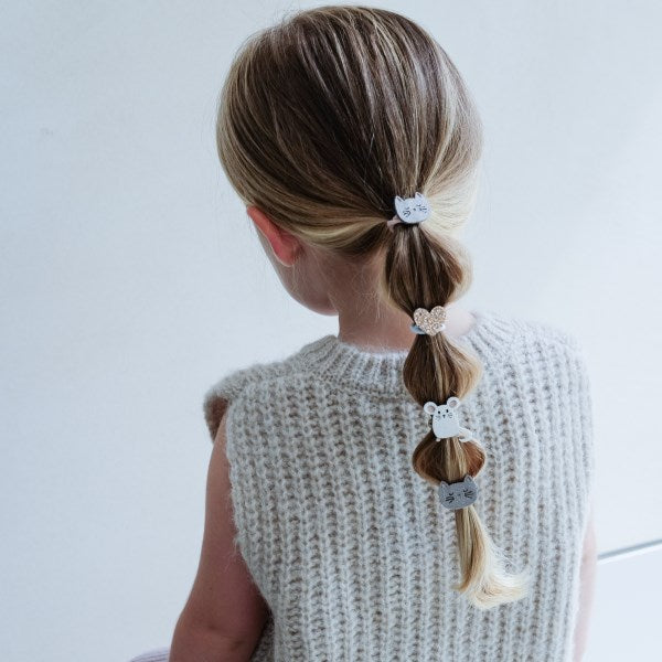 Say hello to our oh-so-cute Cat & mouse mini ponies! Four soft little pussycat faces, two sweet little mice and two golden glittering hearts - mix and match for all sorts of adorable styles!