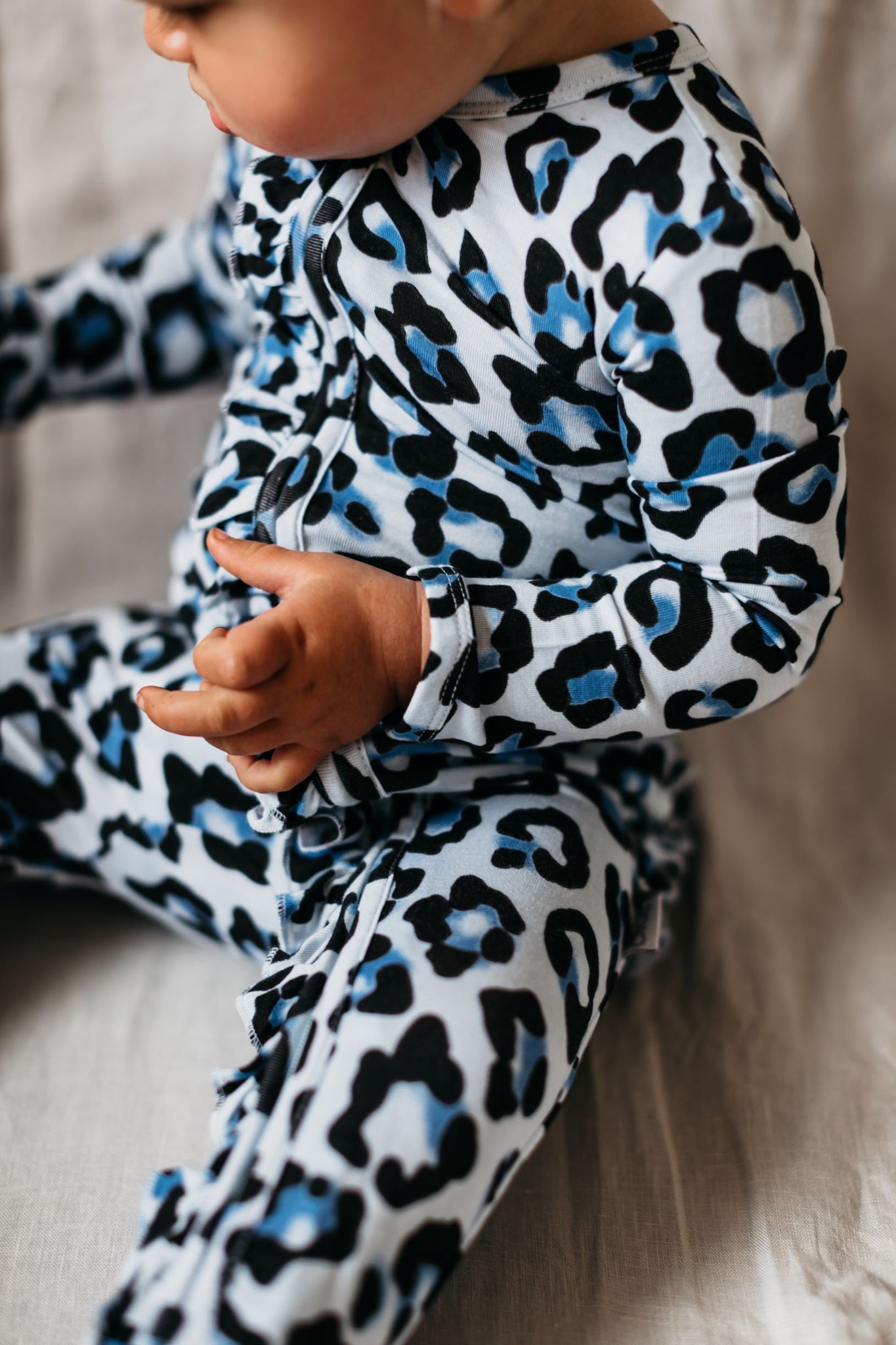 • Load image into Gallery viewer, Romper- Ruffled Blue Leopard