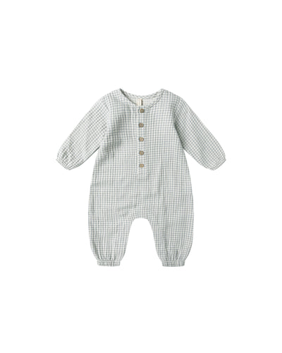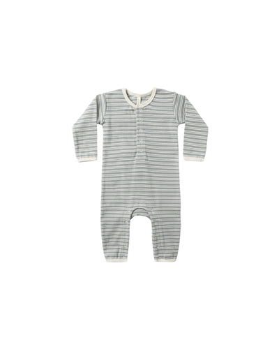 Ribbed Baby Jumpsuit || Steel Blue Micro Stripe