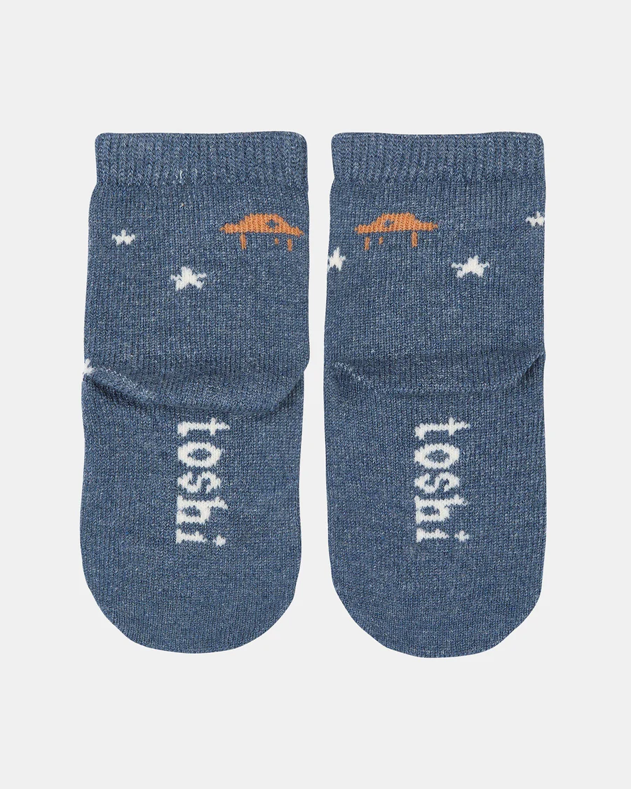 Toshi presents a beautifully curated collection of organic cotton baby socks. Crafting of the socks evolves from a blend of finely textured organic cotton melange yarn. Our cotton yarn is certified organic and this ensures Toshi socks are gentle on delicate baby feet, as well as our precious environment.