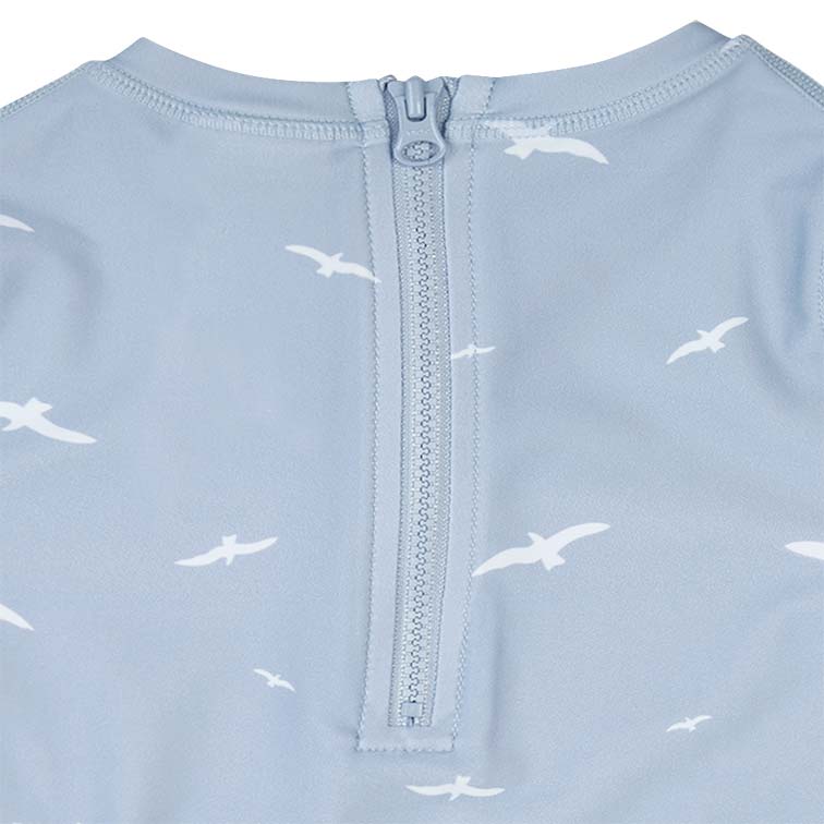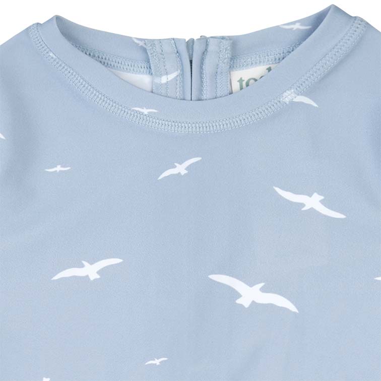 Toshi Long sleeve half zip Rahsie Coogee features an original and exclusive Toshi print design, a flock of seagulls floating on the sea breeze are presented in a classic sky blue hue.
