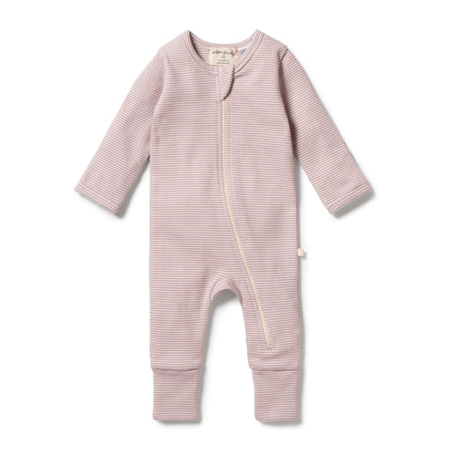 Organic Stripe Rib Zipsuit with Feet - Plum