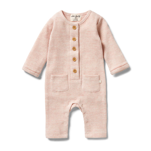 Organic Waffle Slouch Growsuit - Peony Fleck
