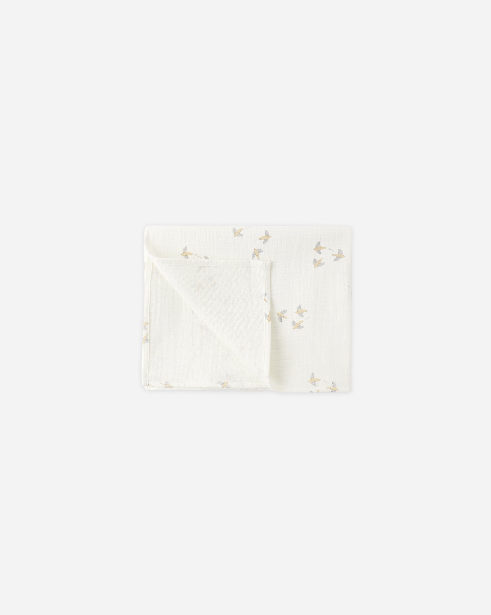 Soft baby swaddle made out of the Quincy Mae organic cotton fabric.