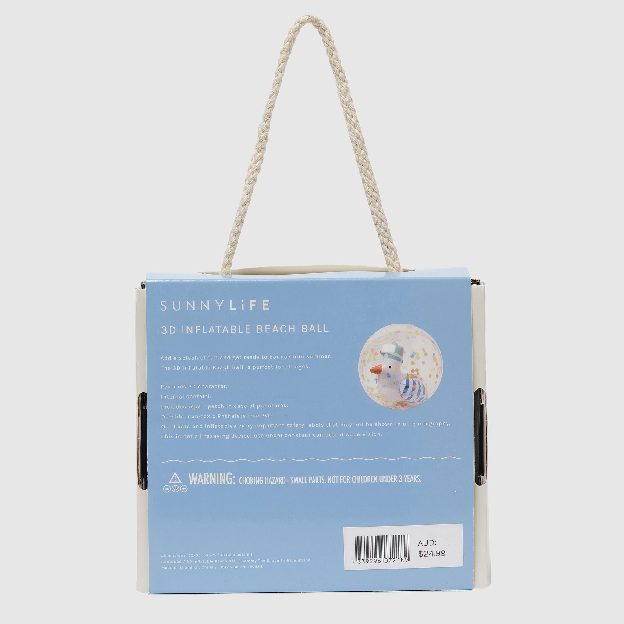 3D Inflatable Beach Ball Sammy the Seagull Blue Stripe